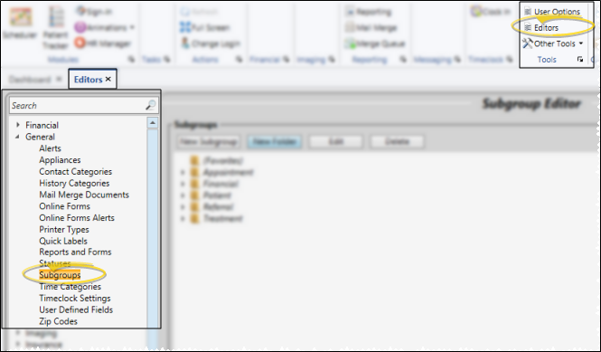 From the Application section of the Widget Library ribbon bar, choose the Subgroup widget icon to open the most recently-used subgroup, or click the arrow beside the icon to choose a common subgroup to display. Then select to open the widget as either a Dashboard or Application widget.