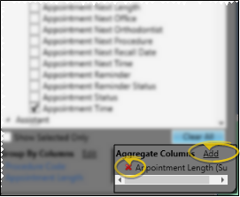 Edit / Remove Aggregate Option - Return to the Settings window, and click Add beside the Aggregate Columns section of the window to select different columns to analyze. Or, click the red X beside an existing aggregate option to remove it from the widget.