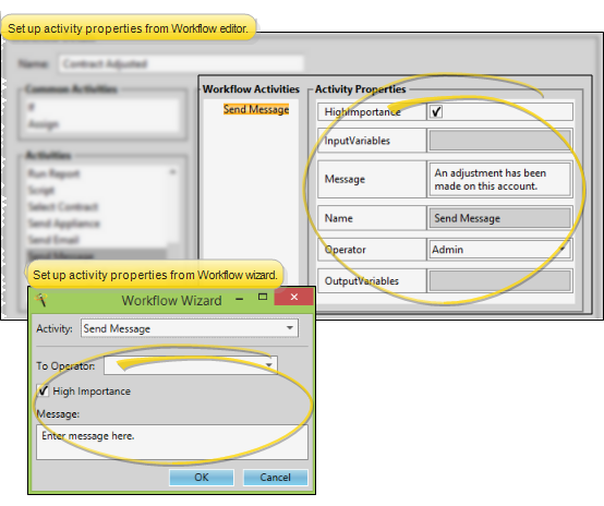 Operator - Select the person you want to receive the message. When you use a wizard, you must select one Edge Cloud operator to receive the message immediately when the activity is triggered. However, you can use the Workflow editor to set this property to None, and be prompted for the Edge Cloud operators and / or professionals that should receive the message when the activity is triggered.
