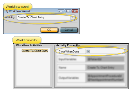 Close When Done - (Available only from the Workflow editor.) Enable this option if you want Edge Cloud to close the patient folder once you have created and saved the treatment chart entry that was initiated by the workflow. Otherwise, the patient folder will remain open even after you finish the record.