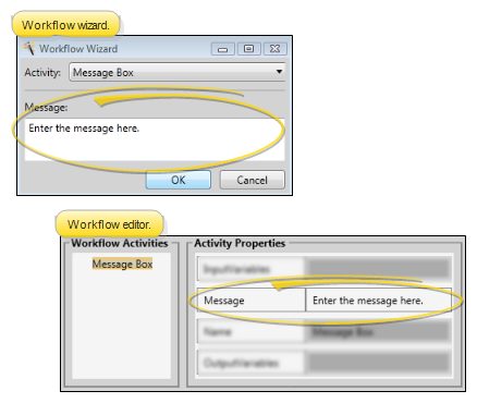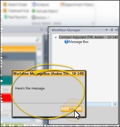 What Happens? - When this activity is triggered by a workflow, your message will pop onto your screen. Click Ok to remove the message box. You cannot change the message once it has been triggered.