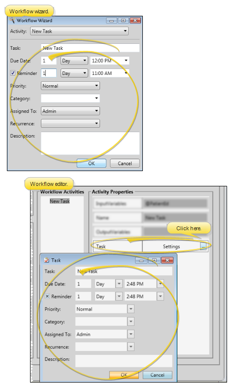 Use the New Task workflow activity to automatically add a new entry to your task widget. A link to the patient folder will be included with the task description.