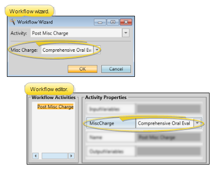 Misc Charge - Use this property to select the miscellaneous charge you want to post when this activity is triggered by a workflow. You must select a description from your Miscellaneous Charges editor.