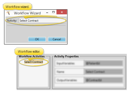 Use the Select Contract workflow activity to open a window that prompts you to select the patient contract to work with.