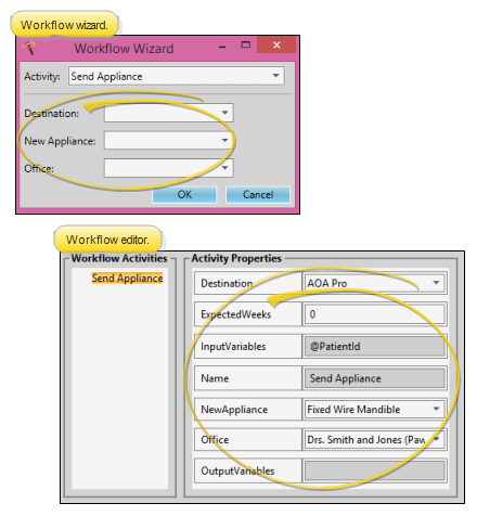 Expected Weeks - (Available only from the Workflow editor.) Enter the number of weeks this appliance is generally out for service. If you leave this field at 0, no expected return date will be entered into the patient folder.