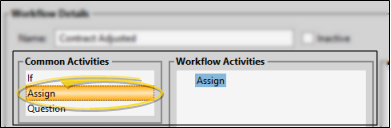 Drag the "Assign" element from the Common Activities list to your Workflow Activities list.