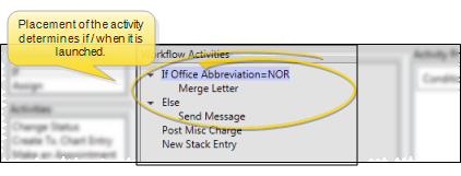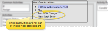 Activities that are not part of the conditional statement can be either above or below the "If / Else" statements, and will occur whenever the workflow is triggered. These activities are not indented.